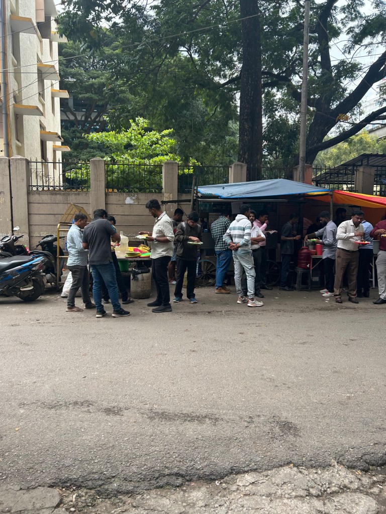 לא park ולא view, מזללה של אוכל מהיר, אוכלים בעמידה סביב שולחנות גבוהים, מזמינים מהדלפק, מקבלים קבלה ומביאים לדלפק מאחורה שניצב לפני מטבח פתוח. במטבח מלא תנועה. במסעדה מלא תנועה. אני מסתכלת בתפריט. כל המגוון של ארוחת בוקר בדרום הודו: פורי, מסאלה, אידלי, ואדה, הכל. הזמנתי פורי. נתתי את הפתק לאיש מאוחרי הדלפק. הוא חייך אלי ואני חייכתי בחזרה.