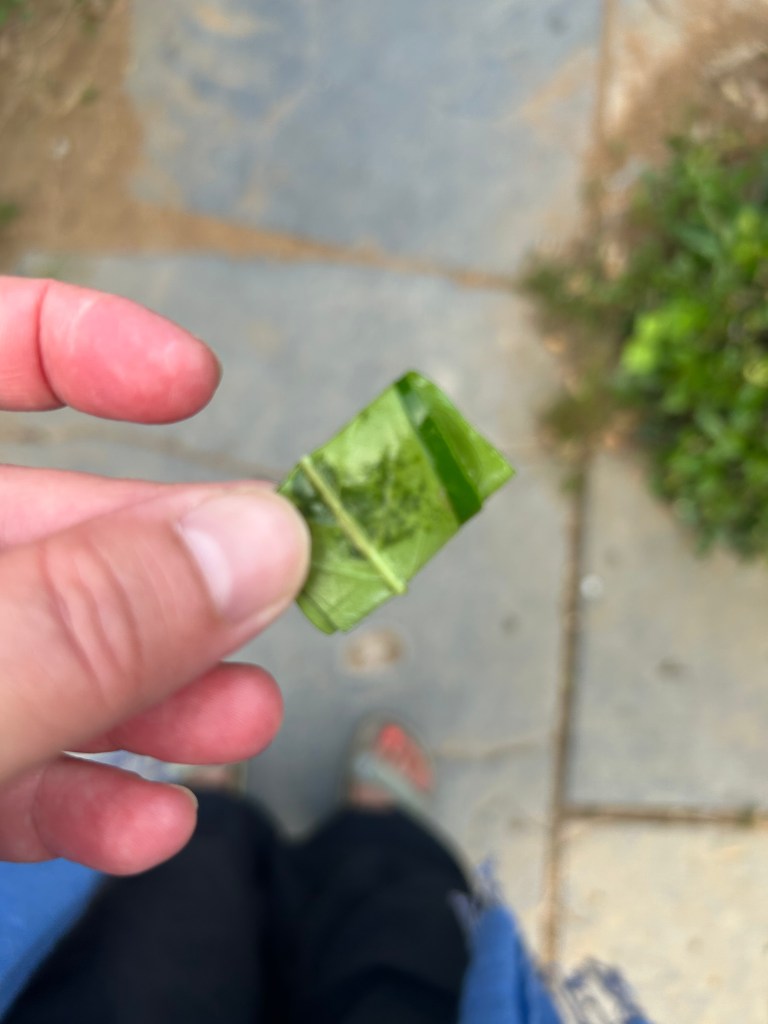 כשיצאתי מהפארק קרא לי איש שעמד עם אופניים ליד הכניסה. הוא הצביע על צמח, תלש ממנו שני עלים, קיפל עלה אחד קטן קטן ושם בפה שלו, קיפל את השני קטן קטן ונתן לי ואמר health, health ועשה תנועות בפנים ועם היד ככה שלא יכלותי שלא להבין. הכנסתי לפה והתחלתי ללעוס. הוא עשה תנועות של לעיסה. ואז הצביע על הבטן שלו וליטף אותה בתנועות מעגליות ואמר cleaning, cleaning. לא הבנתי אם ללעוס ולירוק או ללעוס ולבלוע אז עשיתי תנועות שהיו אמורות לשאול את זה והוא עשה תנועות של בליעה ופתח את הפה שלו והראה לי שהוא ריק. בלעתי, אבל אם מים. אמרתי לו הרבה תודה, thank you thank you והוא עשה תנועה של ביטול עם היד ואמר Thank Arunachala כלומר תודי להר, והסתובב אל ההר והשתחווה אל ההר ועשה תנועה של נמסטה בידים שלו ואני עשיתי כמוהו. Thanks Arunachala.